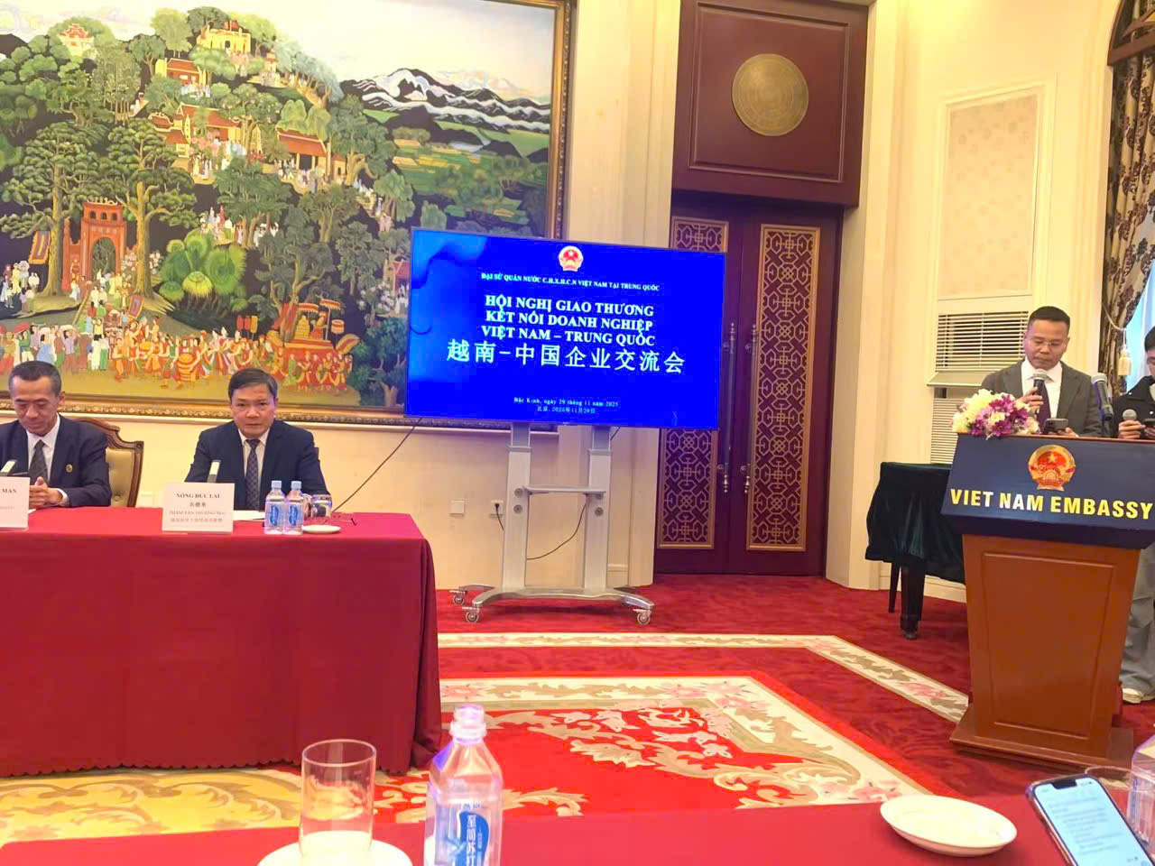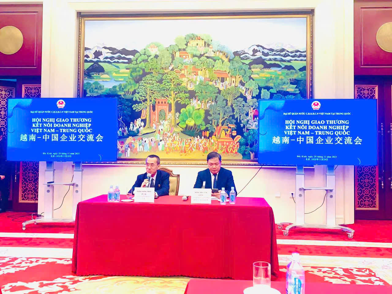 Chiều ngày 29/11/2025, tại trụ sở Đại sứ quán Việt Nam ở Bắc Kinh - Trung Quốc, chương trình "Hội nghị giao thương kết nối doanh nghiệp Việt Nam – Trung Quốc" đã diễn ra trang trọng với sự tham dự của đại diện các cơ quan ngoại giao, Thương vụ Việt Nam tại Trung Quốc cùng đông đảo doanh nghiệp hai nước. Sự kiện do Thương vụ Việt Nam tại Trung Quốc phối hợp cùng các đơn vị tổ chức, nhằm thúc đẩy hợp tác thương mại song phương và hỗ trợ doanh nghiệp Việt mở rộng thị trường tại Trung Quốc.