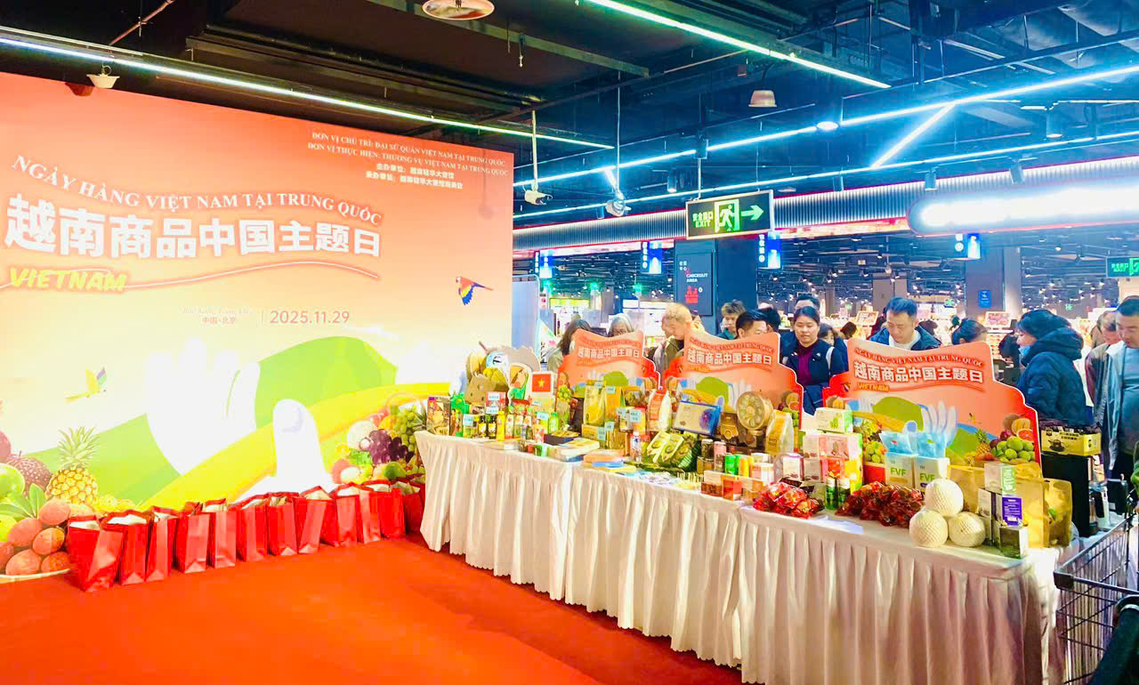Sáng ngày 29/11/2025, tại Bắc Kinh (Trung Quốc), sự kiện “Ngày hàng Việt Nam tại Trung Quốc và Lễ hội Trái cây Việt Nam tại hệ thống siêu thị Wumart” đã được tổ chức trọng thể với sự tham gia của Thương vụ Việt Nam tại Trung Quốc, Tập đoàn Wumart, Tập đoàn GoodFarmer cùng nhiều doanh nghiệp Việt Nam – Trung Quốc.