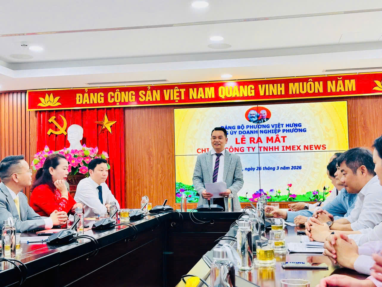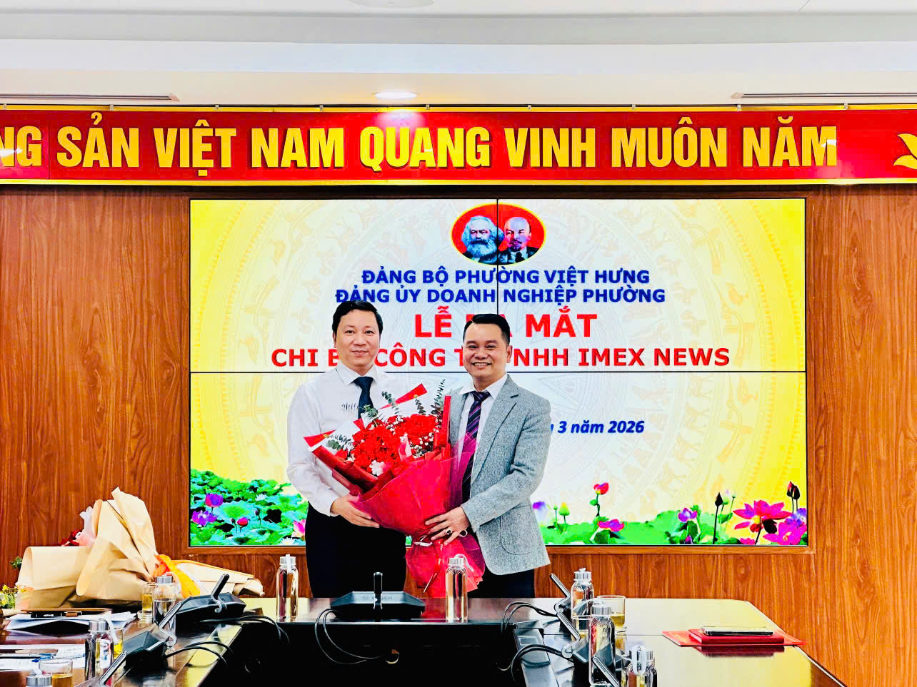 Sáng ngày 26/3/2026, tại Đảng uỷ phường Việt Hưng, Lễ ra mắt Chi bộ Công ty TNHH IMEX NEWS đã được tổ chức trang trọng với sự tham dự của các đồng chí lãnh đạo Đảng uỷ phường, Ban thường vụ Đảng ùy doanh nghiệp phường, đại diện các ban, ngành, đoàn thể và toàn thể đảng viên trong chi bộ.